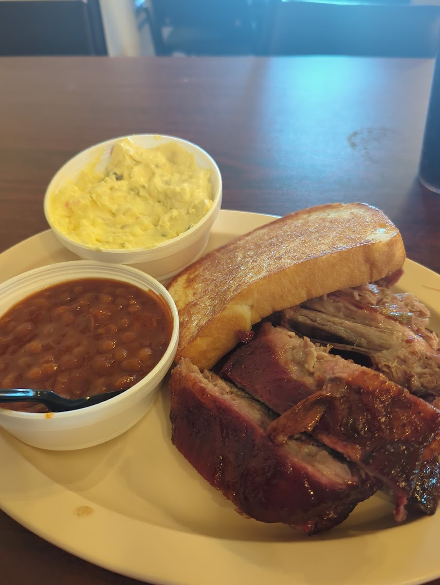 This is a wonderful little BBQ place. We were just passing through and decided to stop in to eat. The prices were reasonable for what can only be described as giant portions. The staff was super attentive and incredibly fast. We had an absolutely amazing BBQ lunch and finished up with pecan cobbler. Definitely get the cobbler even if you have to take it to go like we did