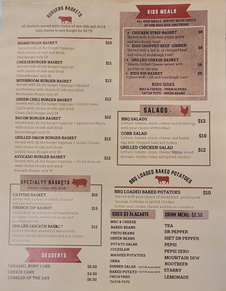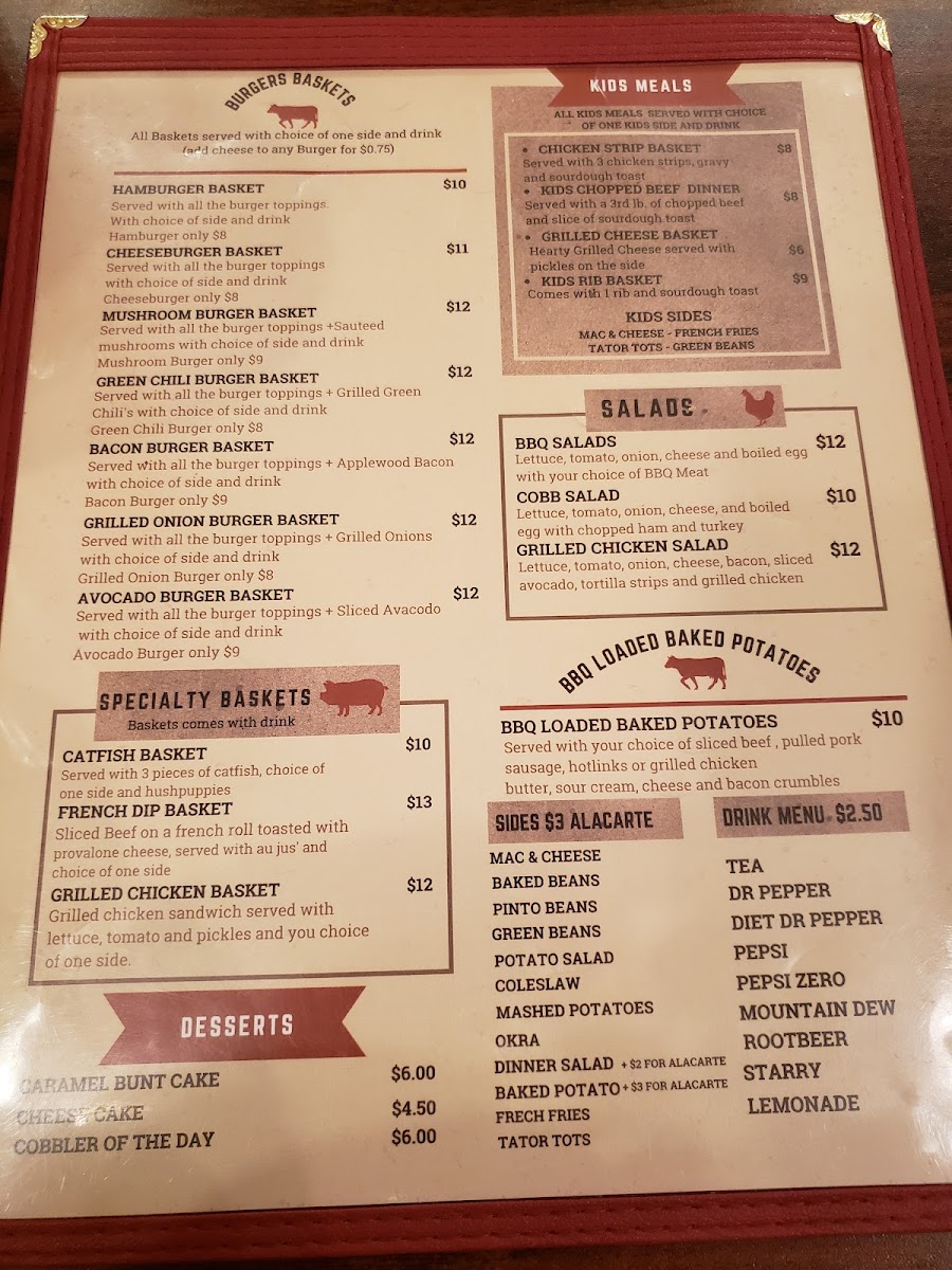 You’ll find meals designed to be enjoyed at any time of day—from midday gatherings to evening meals that invite slowing down and savoring each bite. Classic plates like the chopped brisket sandwich or the catfish dinner fit seamlessly into this unpretentious setting. The menu also offers BBQ-loaded baked potatoes and a few light options like edamame, providing balance to the smokehouse flavors.