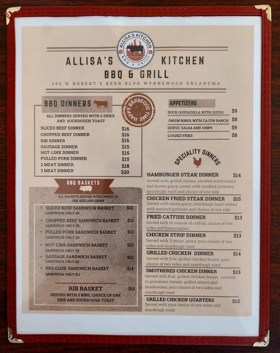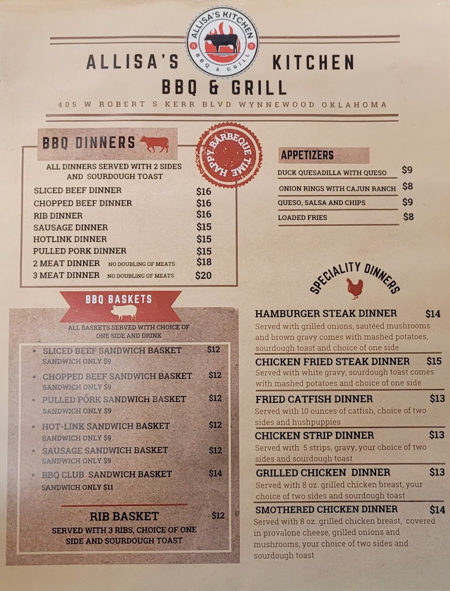 Allisa’ kitchen BBQ & Grill Menu